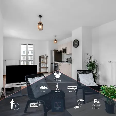 Le Parc Disneyland se trouve à moins de 10 minutes en voiture de l'appartement, tandis que le Centre Commercial Val d'Europe est à 10 minutes à pied. Le centre-ville est à seulement 2 km, et l'aéroport de Paris-Charles-de-Gaulle est à 45 km. L'attraction Indiana Jones et le Temple du Péril se trouve à 3 km.
